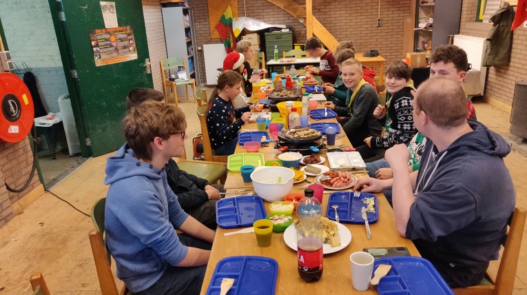 Vandaag hebben de Scouts en Welpen in ploegjes samen gekookt. Leuke uitdaging, maar het eindresultaat mag er wezen!