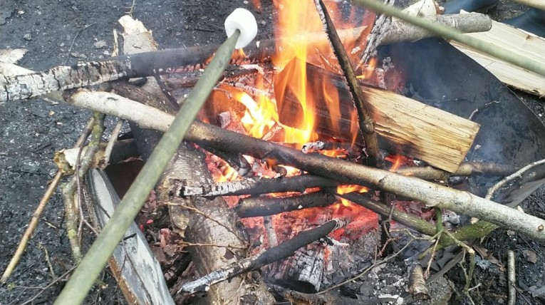 De welpen hebben zelf hout gehakt voor het kampvuur en er volgens lekkere broodjes op gebakken :p