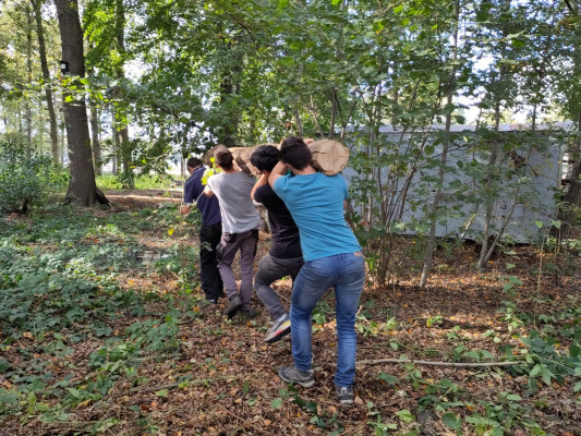 Vandaag hebben we met een grote groep onderhoud gedaan aan het bos en de blokhut